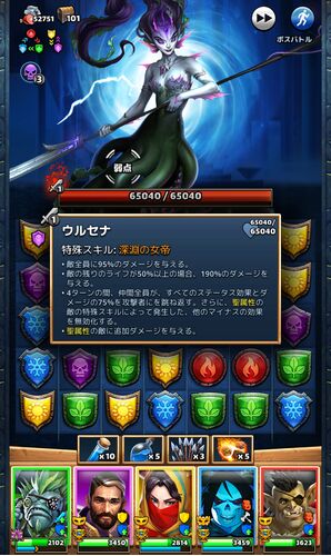 コイン欲しさに周回しているうちにシーズン2はラスボスウルセナまでたどり着きました。★4メインのこのチームでも特に苦戦することもなく終了です。 戦ってみての感想はステータスが若干高い程度であまり違いは感じられません。 終了後コイン500枚とこれ…