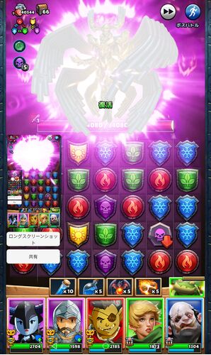 ついにシーズン4ハードの周回もラストまで来ました。ドラゴンのサポートアビリティとピップというアタッカーアニメコスの★4とノーマルをクリアしたときよりもあたま軍団の性能も上がっています。 そしてなんと……ハードでは待望のデミアージュとの直接対決…