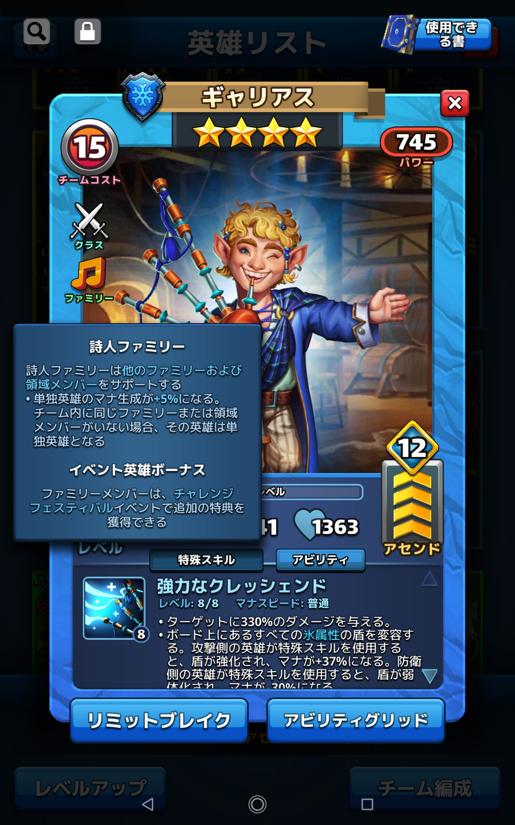 マナ速度普通英雄は13%のマナ補正でパネル9枚でスキルが発動出来るようになります。
