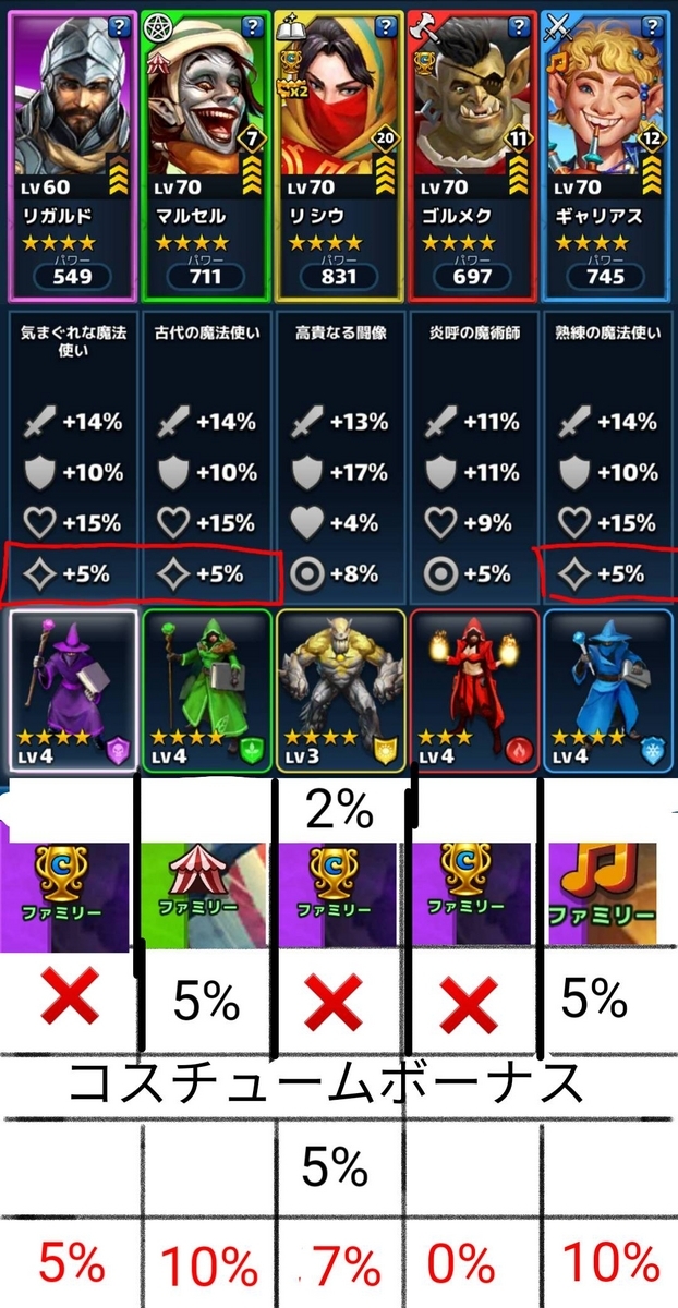 🔴のゴルメクもいずれは他の🔴英雄に変えたいですね。理由としては🔵のギャリアスの持つボーナス効果にあります。