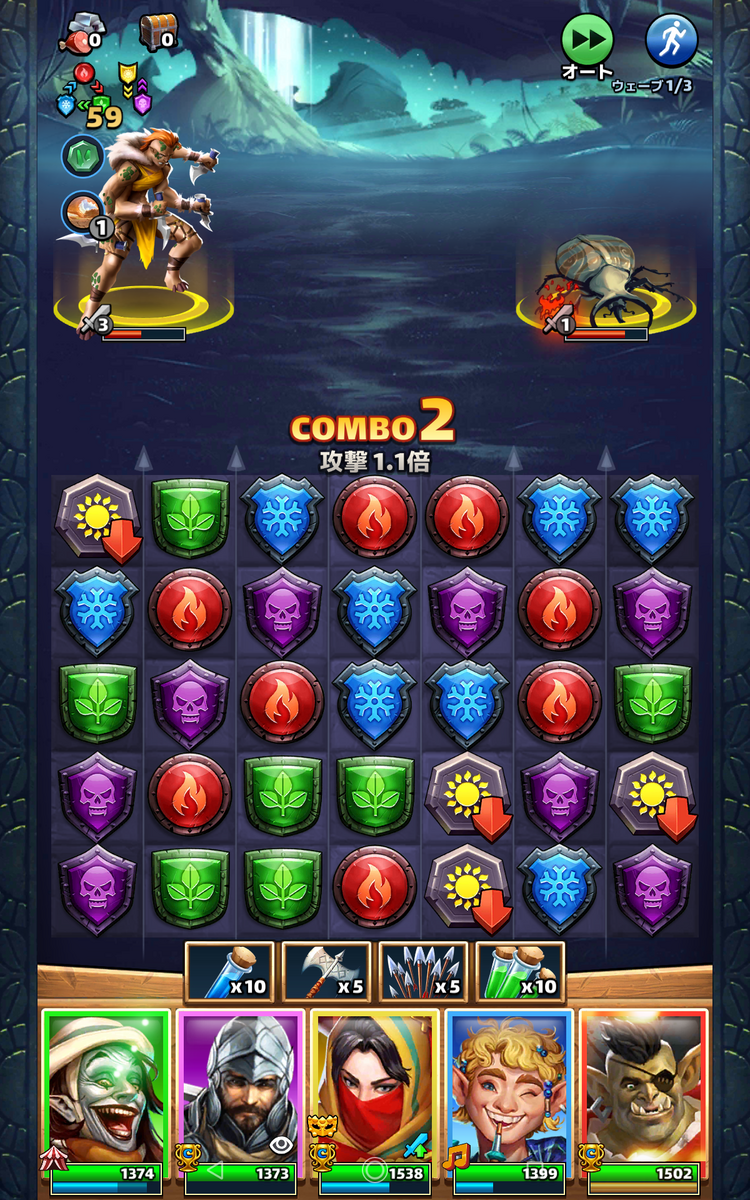 エンパズのオート戦闘はとても優れたオート戦闘なのでこのパネルを優先的に消す!なんて上等なことはしません。気づけば画面上に危険パネルが7枚とかでそのダメージで味方がボロボロになっていることなんかしょっちゅうです!