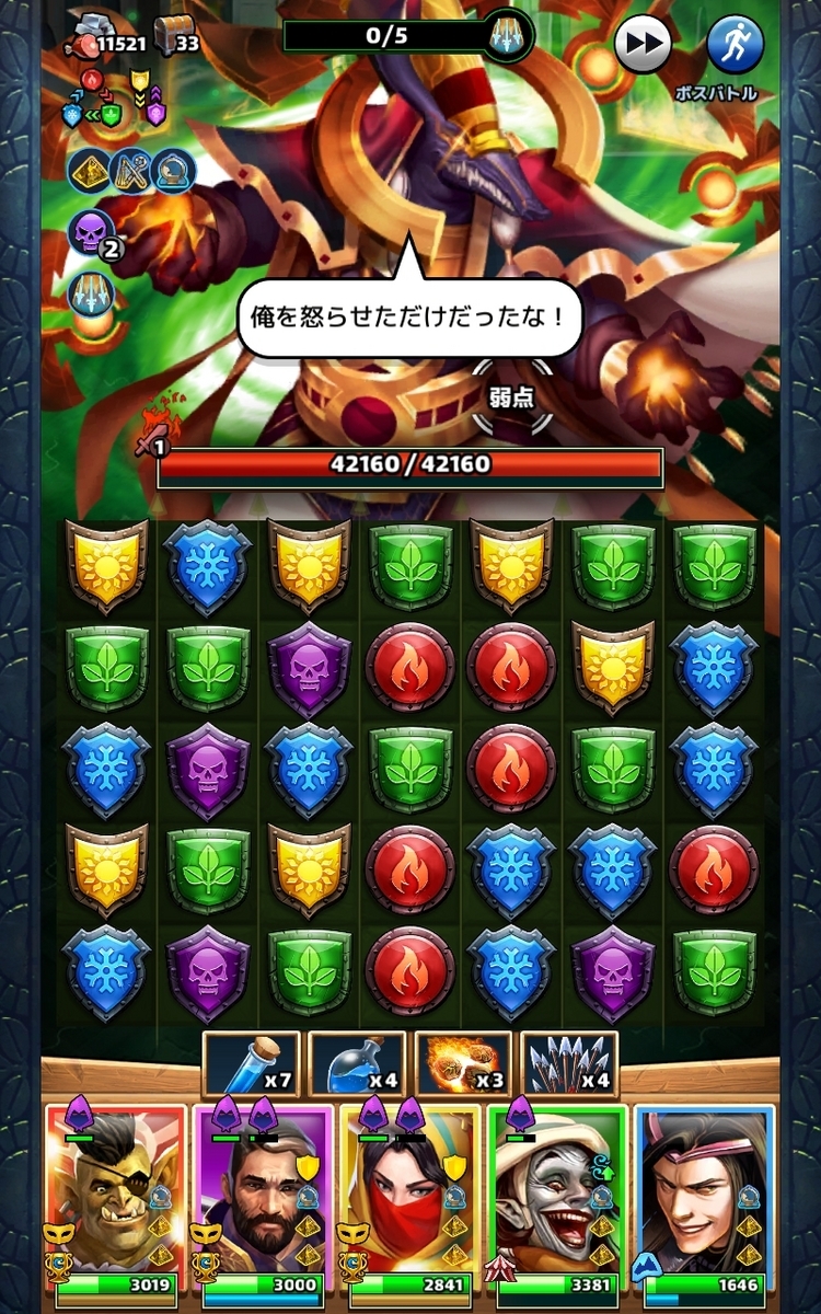 特に最後に手に入るファラオの杖は、★3、4に強力なステータス補正が付くため、★4のメインのあたま軍団には非常に有効でした。