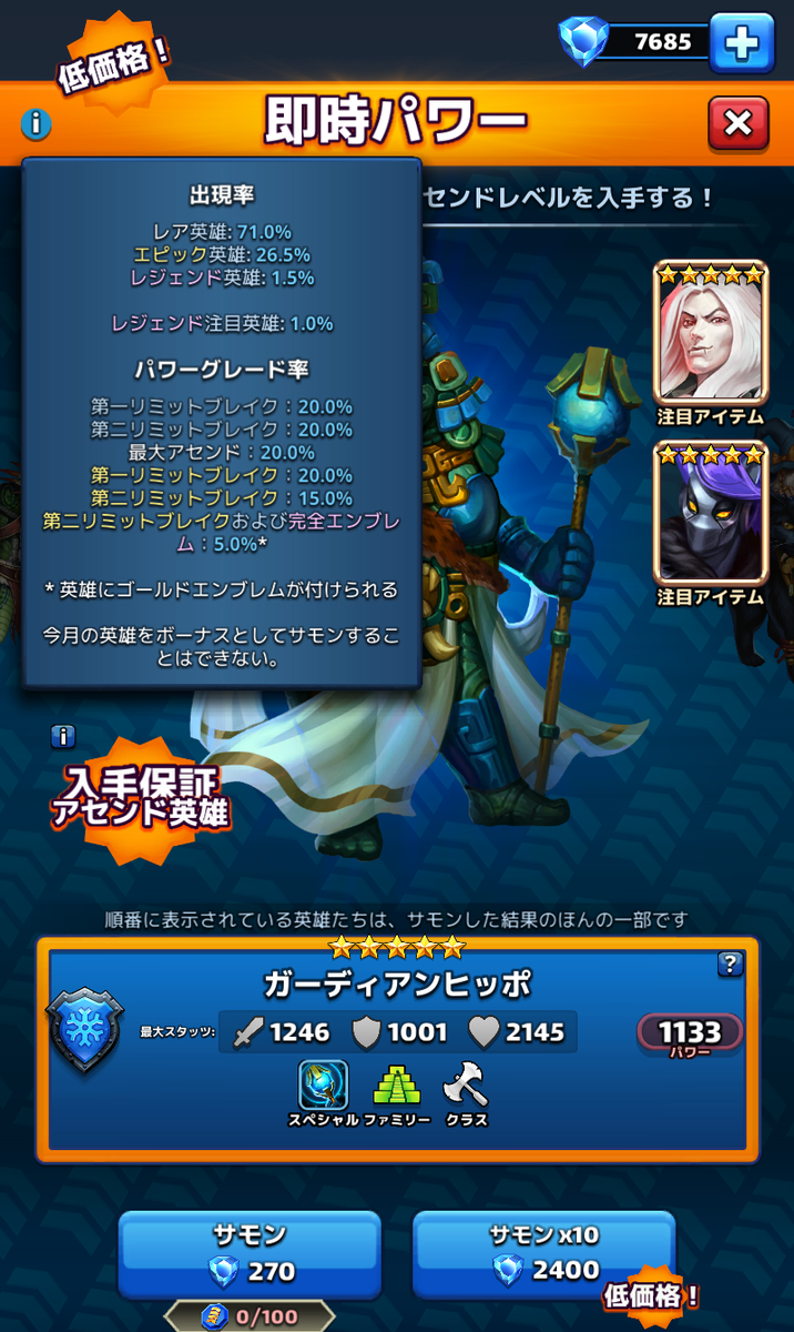 サモン確率は一般的ですが、ランダムである程度強化された状態で出てくるそうです。