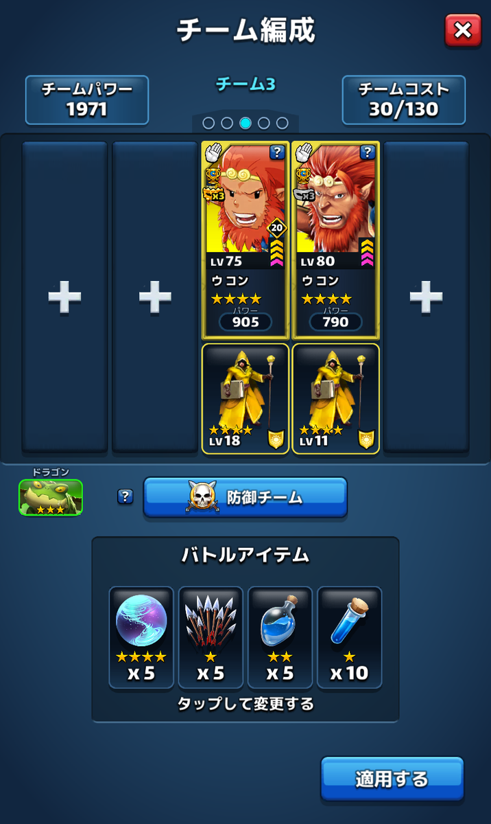 元の手持ちは50で止めていたので今回引けた方のコスチュームを鍛えましょう。