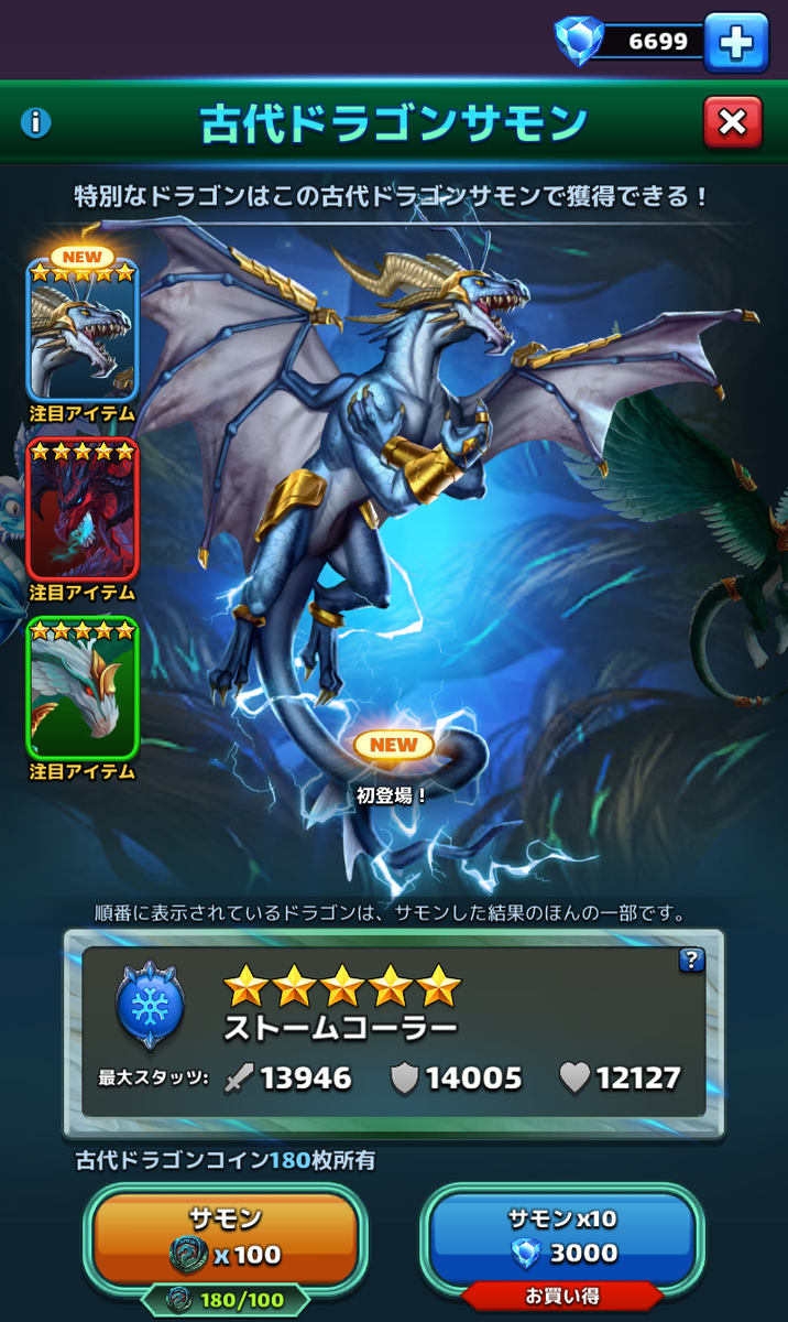 なんと★5ドラゴンが召喚されました。これは嬉しい!本アカですらまだ引いていないのに
