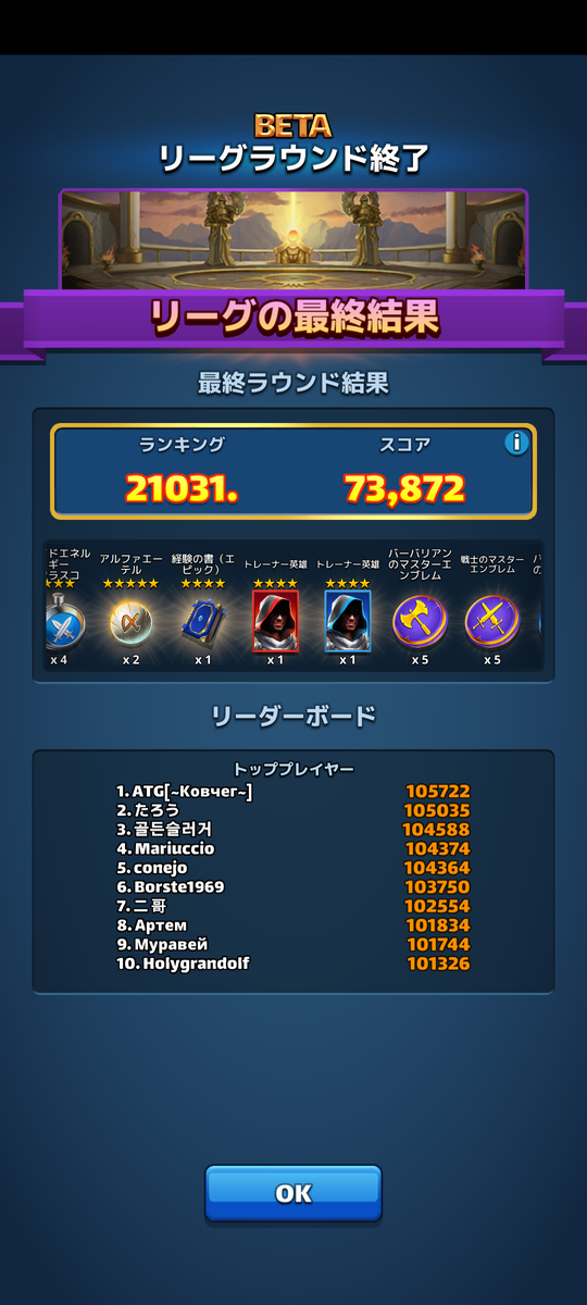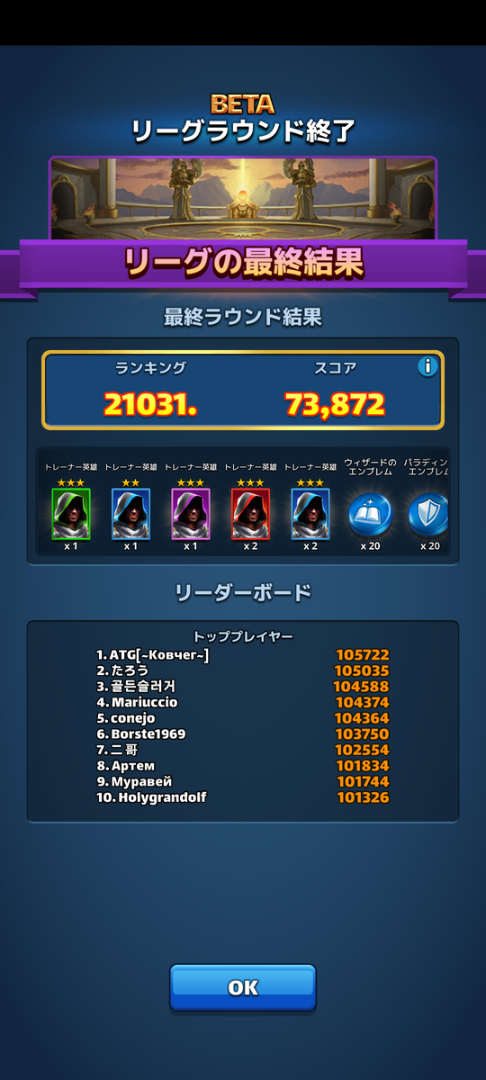 この感じだと次のリーグはシーズン5英雄が強くなるのかな…次も頑張ります!