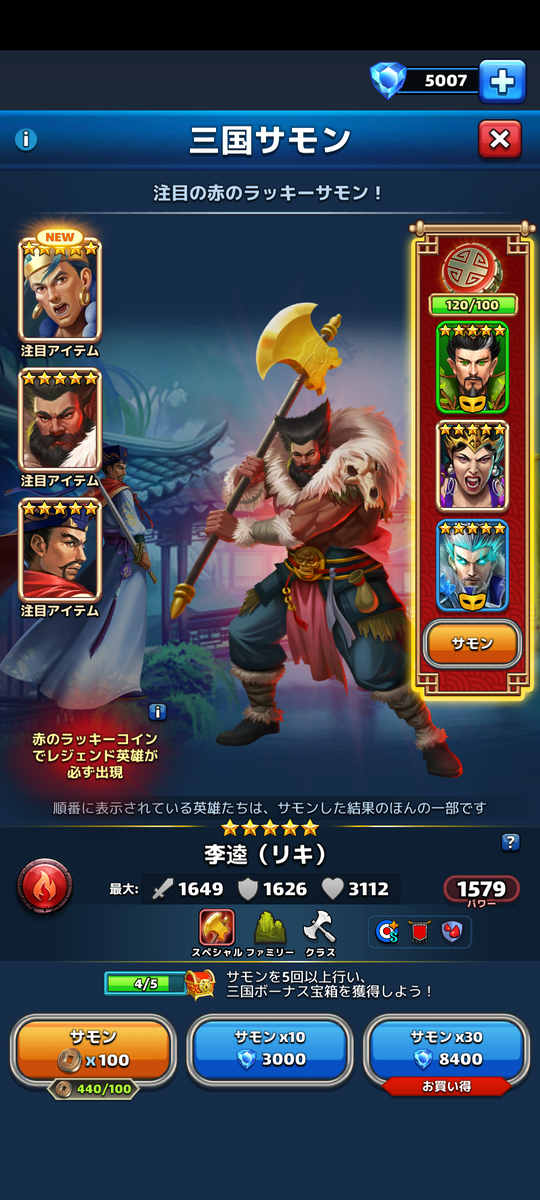 三国戦争だと三国志のヒロイン枠、貂蝉が今回は居ないので引くのを見合わせます。